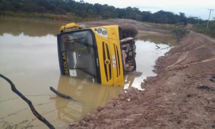 Um ônibus escolar tombou e caiu em um açude após descer uma área de declive no povoado Morada Nova, zona rural do município de São Miguel do Tapuio. O acidente aconteceu na manhã desta terça-feira (18).
